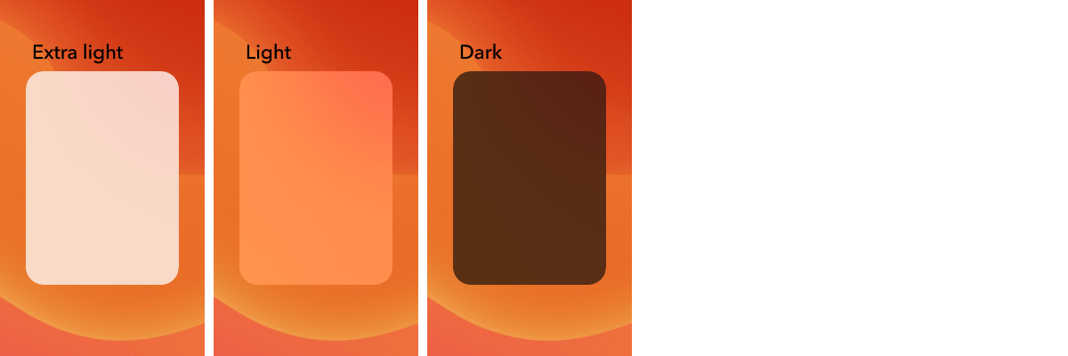 Blur styles can be either adaptive or static. Adaptive blur styles change depending on whether the prototype is running with the light or dark interface style. A static blur style appears the same regardless of the interface style.