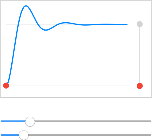 The friction controls the force opposing the spring's pull, which determines how quickly the animation settles down and stops oscillating. Because it acts to inhibit the spring, friction is often called the "damping" value. A sufficiently high friction will prevent any bouncing at all, which is called an overdamped spring.