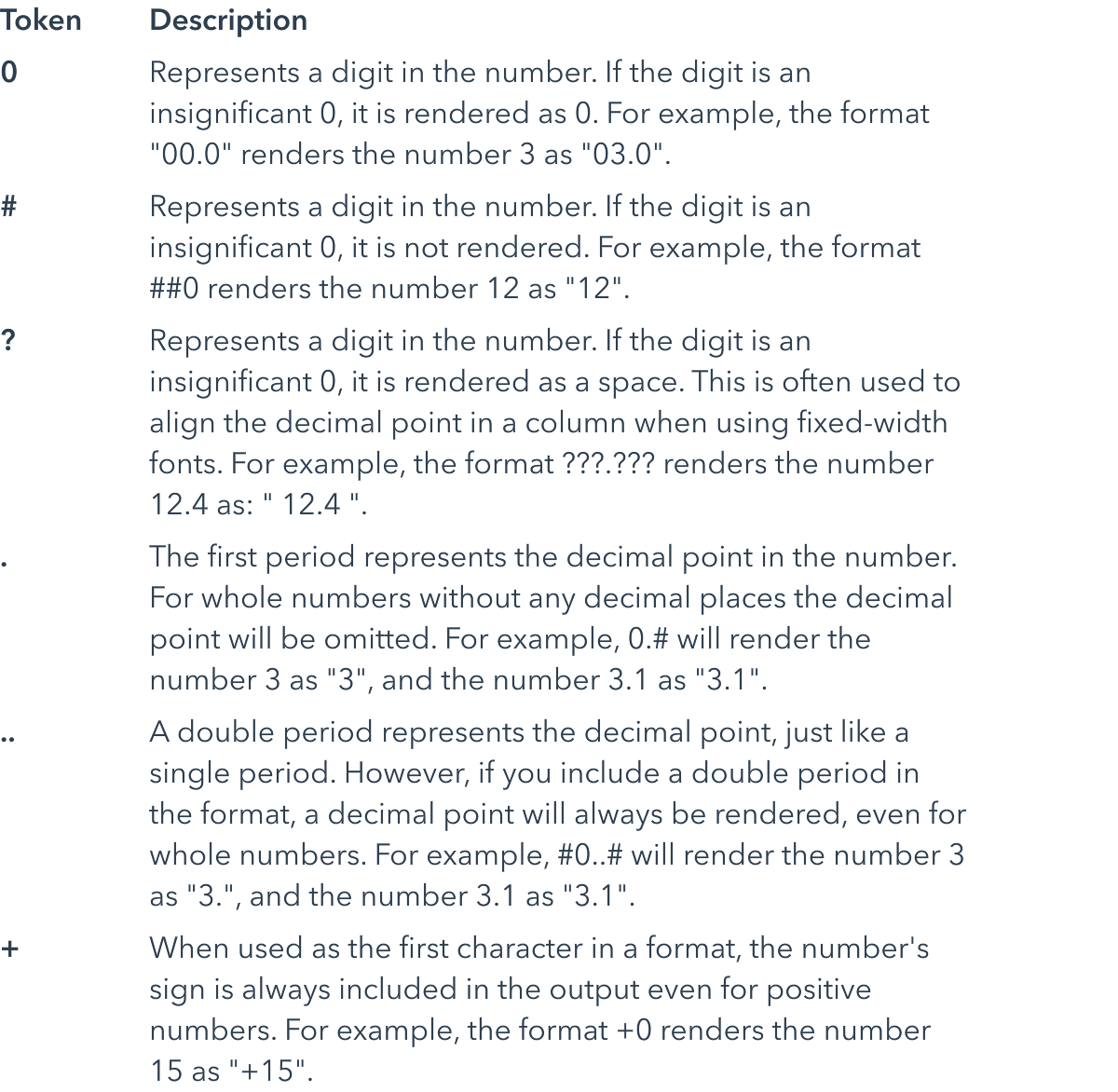 The pattern string may contain the following tokens.