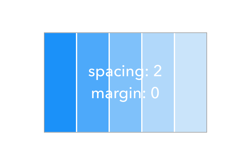 Row { spacing: 2 Rectangle { width: 50 height: 100 color: #1b91f9 } Rectangle { width: 50 height: 100 color: #4da9fa } Rectangle { width: 50 height: 100 color: #7fc1fa } Rectangle { width: 50 height: 100 color: #7fc1fa } }