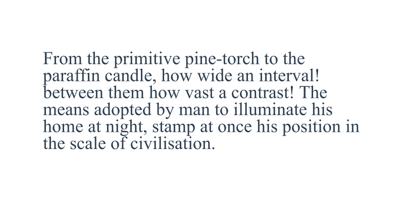 Text { width: 100 text: "From the primitive pine-torch to the paraffin candle, how" lineSpacing: 1.2 }