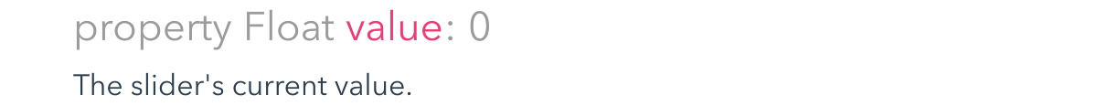 The documentation of writable properties usually also includes their default value. In the case of the value property, the default value is 0. If the default value is not a simple constant, it will be described in the documentation body.