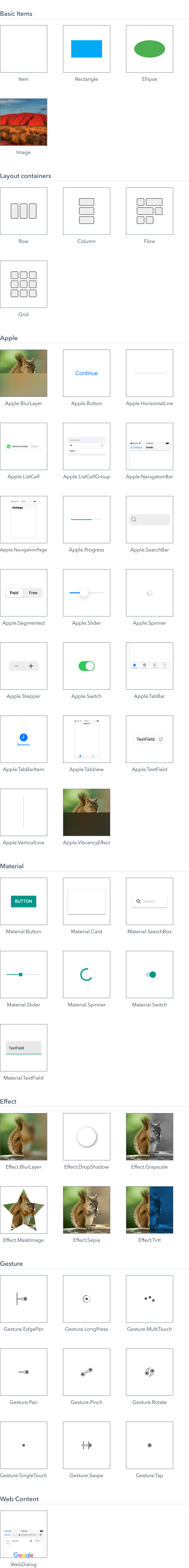 Use the navigator on the left to browse the complete list of elements, value types and APIs included with Zing.